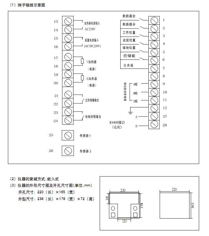 功能描述:動態(tài)模擬顯示圖、語音防誤提示、柜內(nèi)溫濕度模擬顯示及控制、高壓帶電顯示及閉鎖、分/合閘指示、儲能指示、照明操作、RS-485通訊接口(選配)。