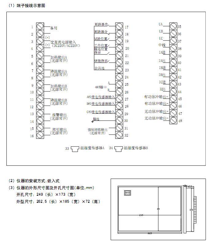 功能描述:多功能電能表功能,例如電力綜合參數(shù):三相電流、三相電壓、功率因數(shù)、有功無(wú)功電度等。能進(jìn) 行分/合閘回路的完好指示、動(dòng)態(tài)模擬圖顯示功能、語(yǔ)音防誤操作提示、高壓帶電顯示及電磁閉鎖、遠(yuǎn)方/就地、分/合閘、儲(chǔ)能、照明操作等功能。且具有全數(shù)字、精度高、智能性高的兩路溫濕度控制。還具有RS-485通訊接口功能,能一次上傳開(kāi)關(guān)量、兩路溫濕度、三相計(jì)量的全部數(shù)據(jù),斷電后設(shè)置數(shù)據(jù)不丟失.