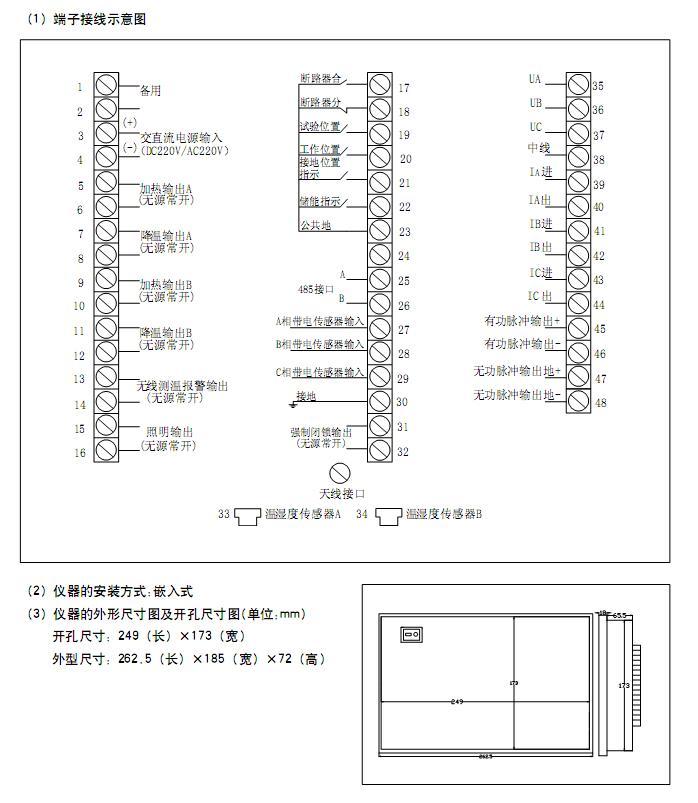 動(dòng)態(tài)模擬顯示圖、語(yǔ)音防誤提示、柜內(nèi)溫濕度顯示及控制、觸頭/電纜搭接頭在線測(cè)溫、高壓帶電顯示 及閉鎖、人體接近語(yǔ)音提示、遠(yuǎn)方/就地操作、照明操作、分/合閘指示、儲(chǔ)能指示、分/合閘回路完好指 示、預(yù)分預(yù)合閃光指示、二次分合閘回路電壓測(cè)量、人體感應(yīng)探頭和RS-485通訊接口、4-20mA可編程接口(此功能為選配,且其通信電源已提供)。